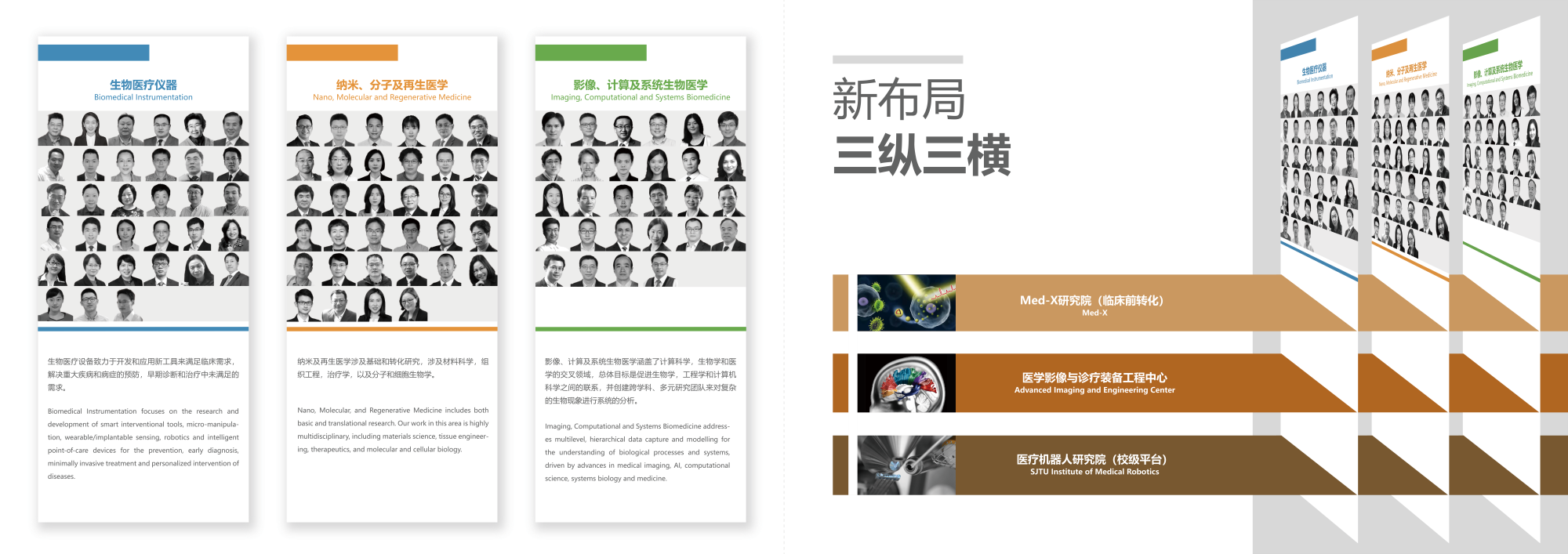 学院坚持面向前沿布局学科领域,建院初期重点发展四个学科领域:生物医疗仪器、神经科学与工程、医学影像与信息和纳米生物材料,逐步拓展增加了系统生物医学和疾病生物学。2016年和2018年成立了医学影像先进技术研究院并参与建立福利姬 医疗机器人研究院,学科进一步向医学仪器与智慧诊疗、分子与纳米医学两大方向聚焦。2020年着手建立“三纵三横”的新格局建设,在学科内部强化交叉协同创新,在学科高原上建设高峰。